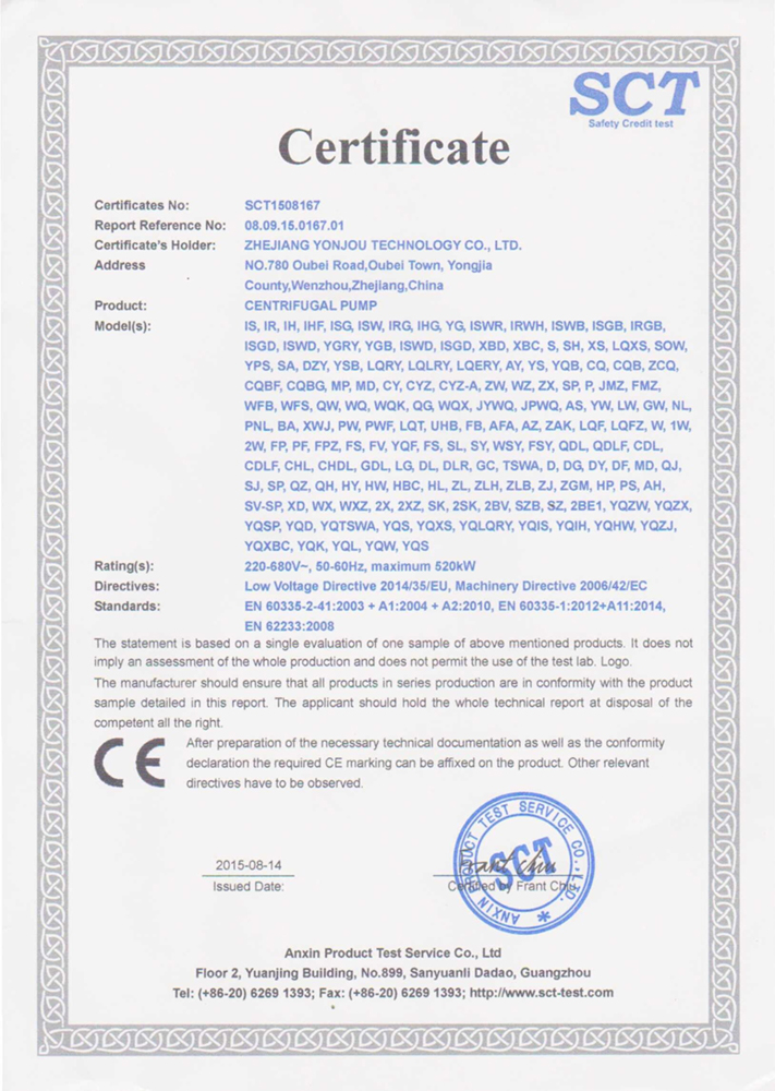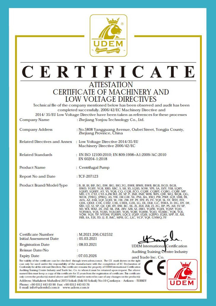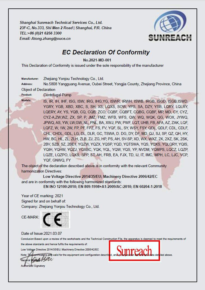 CE 國際產(chǎn)品認(rèn)證(離心泵)