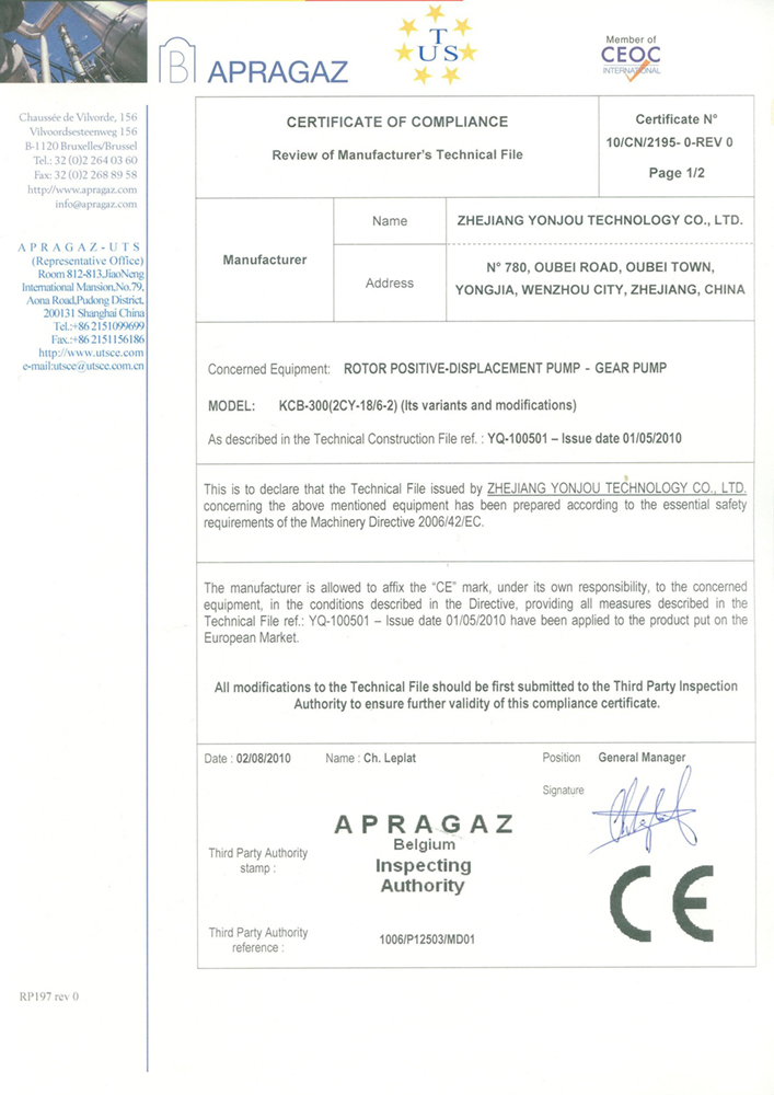 CE 國際產(chǎn)品認(rèn)證(容積泵)